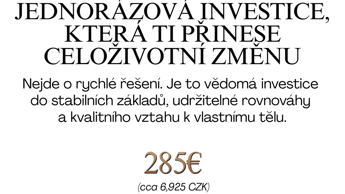 POZNÁMKA: Jakmile bude tvoje platba dokončena, nezapomeň do 24 hodin zkontrolovat svůj e-mail (včetně složky Spam). Pošlu ti tam všechny další kroky, vstupní dotazník a potřebné informace, abys mohla začít svou cestu.